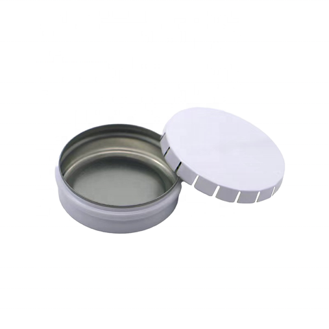 Groothandel Op Maat Wit Rond Kindveilig Metalen Blikken Doos Voedsel Veilig Klik Klak Blikken Blikken Case Voor Mint Snoep Koekjes